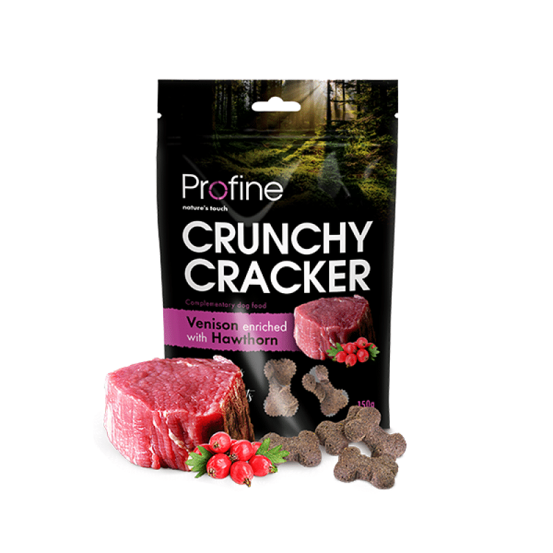 Ingredients: dehydrated game (35%), peas, potato starch, dried apple pulp, poultry fat, dried chokeberry (1%), dried hawthorn (0.5%), spirulina (0.5%).