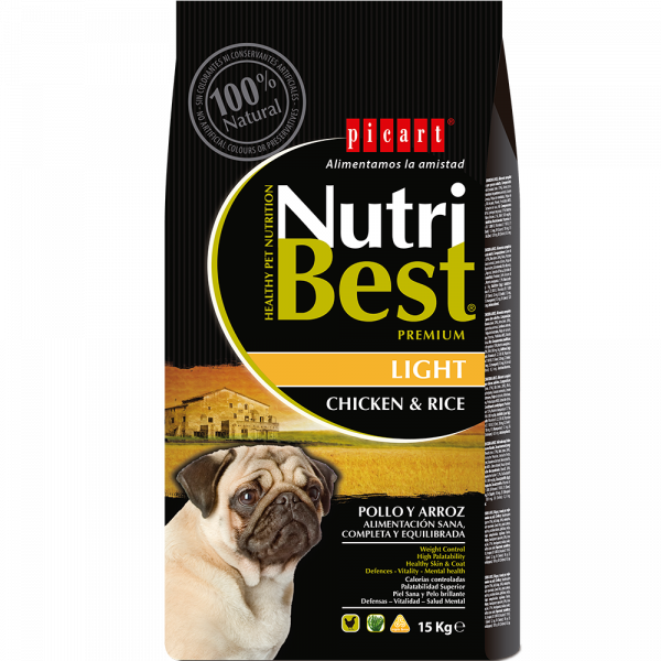 NutriBest Light is a Premium pet-food devised by our experts in nutrition and vets so that your dog grows healthily and full of life whilst enjoying ideal health. It contains Marine Algae from the North Atlantic for healthy and cared for coat and skin.