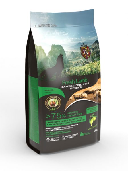 HOLISTIC MEDITERRANEAN NUTRITION FOR DOGS Our Ambrosia Fresh Lamb recipe combines the benefits of high-quality, easily digestible and hypoallergenic Single protein coming