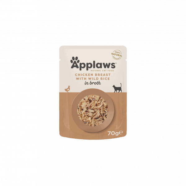 Applaws Chicken Breast with Wild Rice in Broth is a 100% natural complementary pet food for adult cats that contains