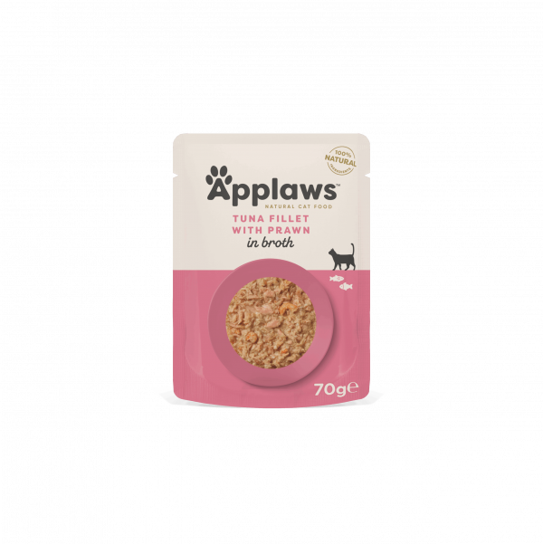 Applaws Tuna Fillet with Prawn in Broth is a 100% natural complementary pet food for adult cats that contains nothing