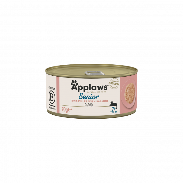 Applaws Senior Tuna Fillet with Salmon in Jelly is a complementary pet food for senior cats, made with natural ingredients.