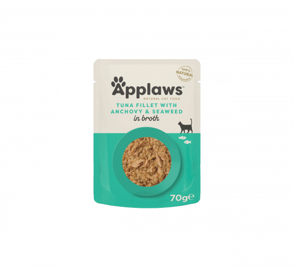 Applaws Tuna Fillet with Anchovy & Seaweed in Broth is a 100% natural complementary pet food for adult cats that