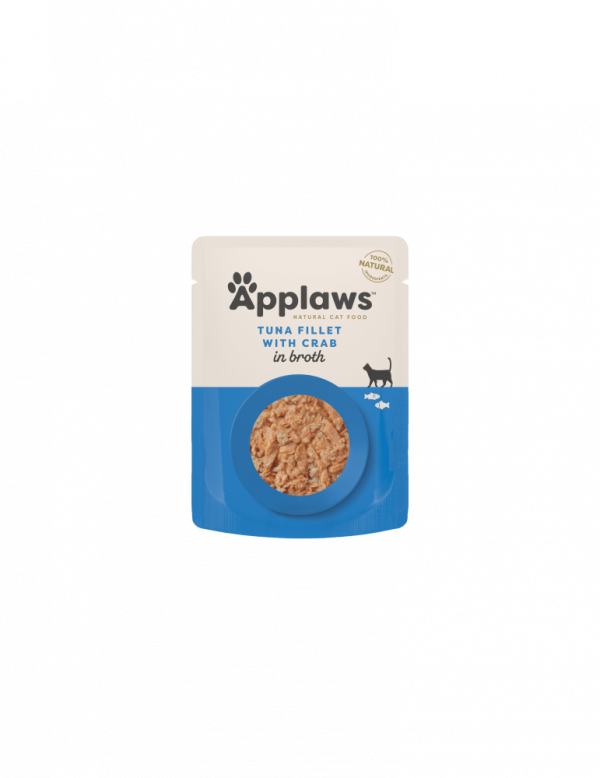 Applaws Tuna Fillet with Crab in Broth is a 100% natural complementary pet food for adult cats that contains nothing