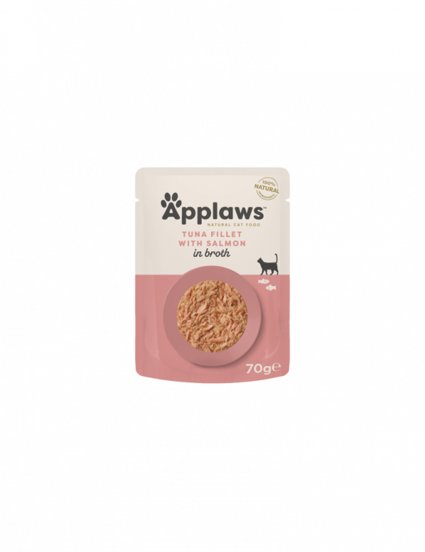 Applaws Tuna Fillet with Salmon in Broth is a 100% natural complementary pet food for adult cats that contains nothing