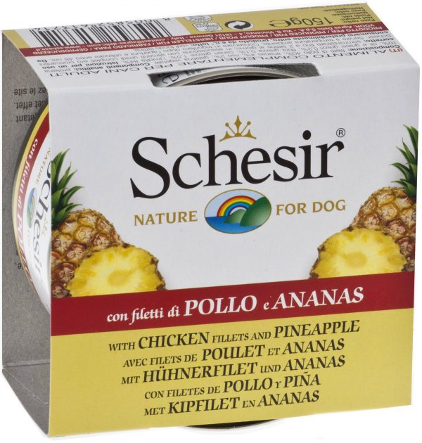 A Schesir recipe based on real chicken fillets, combined with genuine pieces of pineapple, for an exotic and original meal, in a mouthwatering jelly format. Chicken