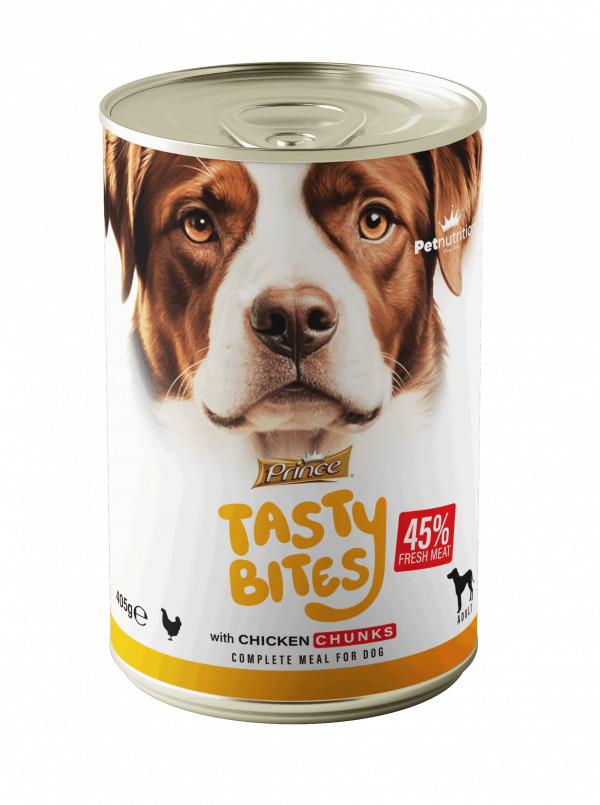 Prince Tasty Bites offers complete and nutritious wet meals, specially crafted for dogs and puppies. With 45% fresh meat and