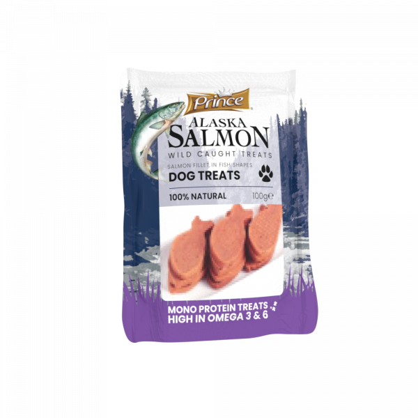 Prince Alaska Salmon Snacks are premium treats made with the highest quality meats, free from by-products, artificial additives, colorants, or fillers.