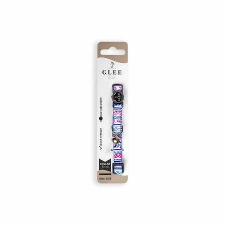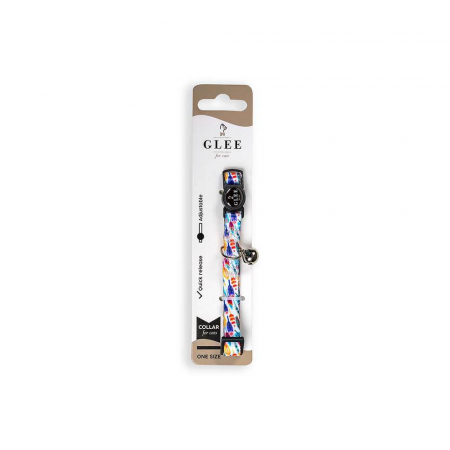 GLEE COLLARS WITH WEBBING TAPE, PLASTIC CLASP AND BELL, MULTICOLOR PATTERNS 10mm x 30cm