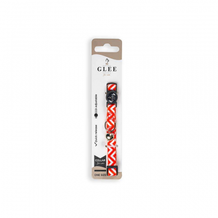 GLEE COLLARS WITH WEBBING TAPE, PLASTIC CLASP AND BELL, RED ZIG ZAG 10mm x 30cm