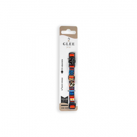 GLEE COLLARS WITH WEBBING TAPE, PLASTIC CLASP AND BELL, MULTICOLOR BLUE- ORANGE 10mm x 30cm