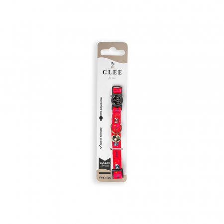 GLEE COLLARS WITH WEBBING TAPE, PLASTIC CLASP AND BELL, MEOW 10mm x 30cm