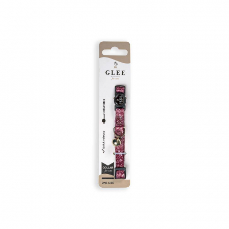 GLEE COLLARS WITH WEBBING TAPE, PLASTIC CLASP AND BELL, PINK LEOPAR 10mm x 30cm