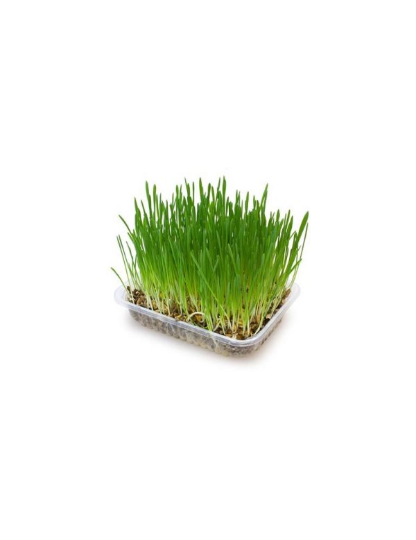 Catnip for cats. Ingesting cat grass prevents the accumulation of hairballs in our cat’s intestine. Tray with seeds that grow