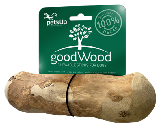 NATURAL CHEWABLE STICKS FOR DOGS Long-lasting entertaiment for our four legged friends. goodWood is very hard, yet rewards your dog with a