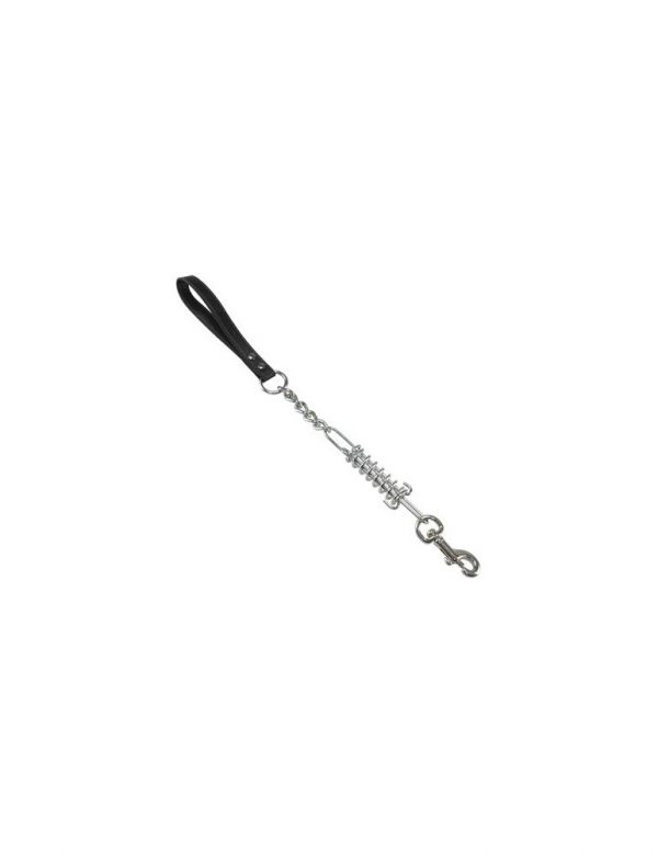 Pulling strap with leather handle and chain with metal spring chrome effect. Easy to attach/detach. With spring.