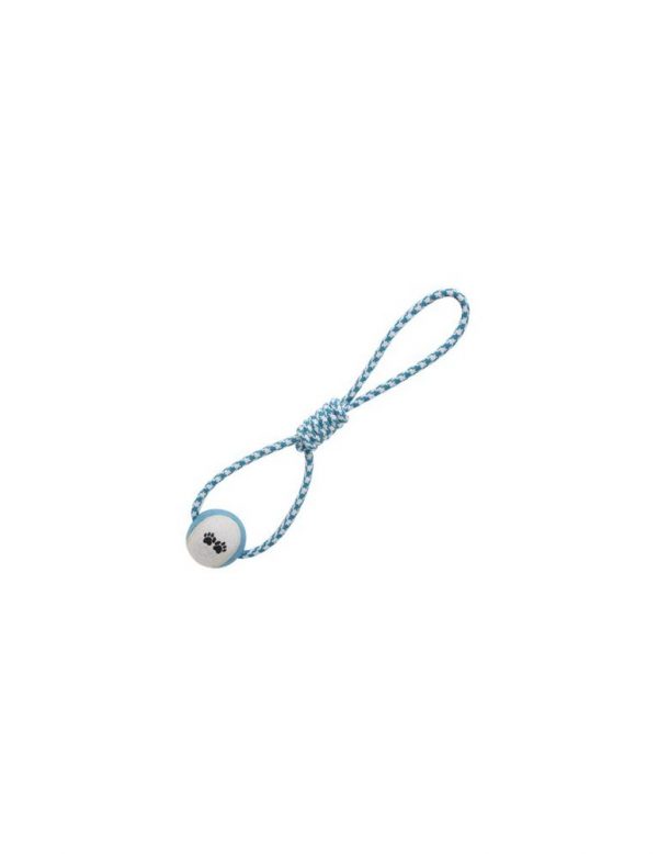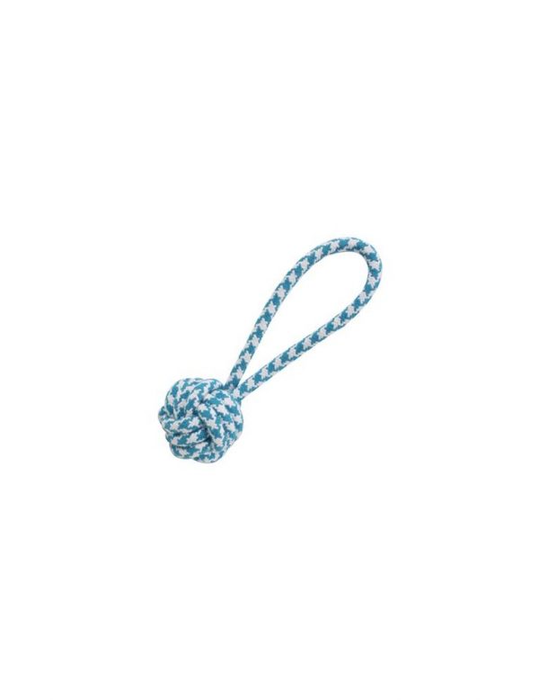 Braided cotton rope puller, with double knot and ball-shaped finish. For dog training or games that help maintain good dental