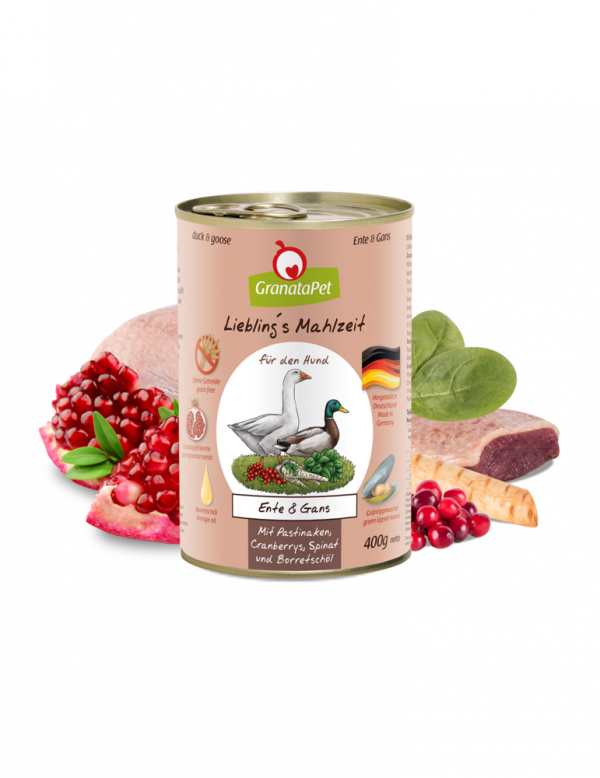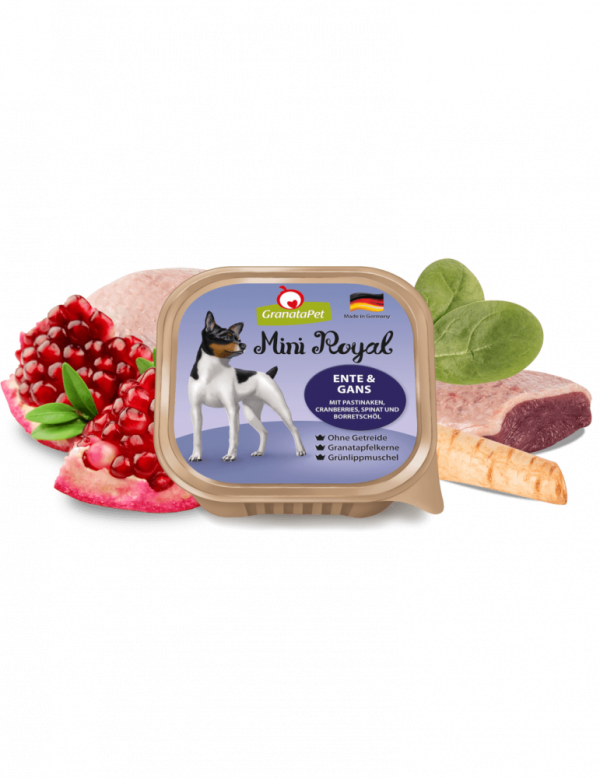 GranataPet Mini Royal Duck & Goose with parsnips , cranberries , spinach and borage oil offers species-appropriate and natural food
