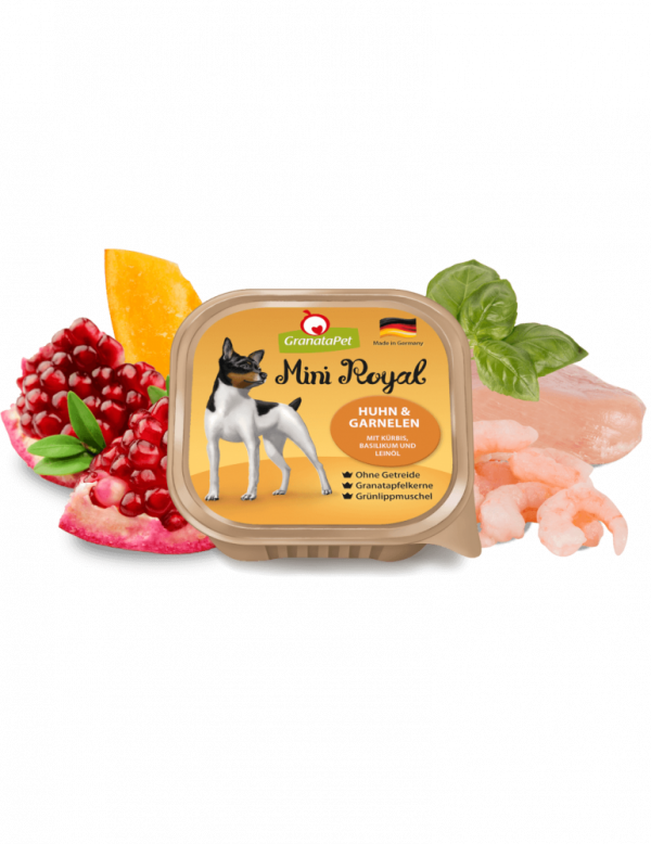 GranataPet Mini Royal Chicken & Shrimp with Pumpkin , Basil and Linseed Oil offers species-appropriate and natural food especially for