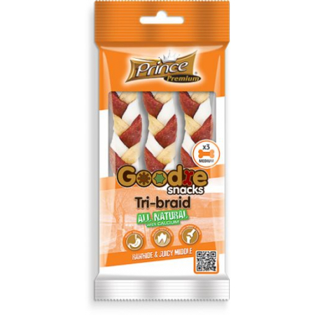 Prince Premium Goodie Snacks Rawhide & Juicy Middle Tri-Braid With Calcium Small 60G (5Pcs)