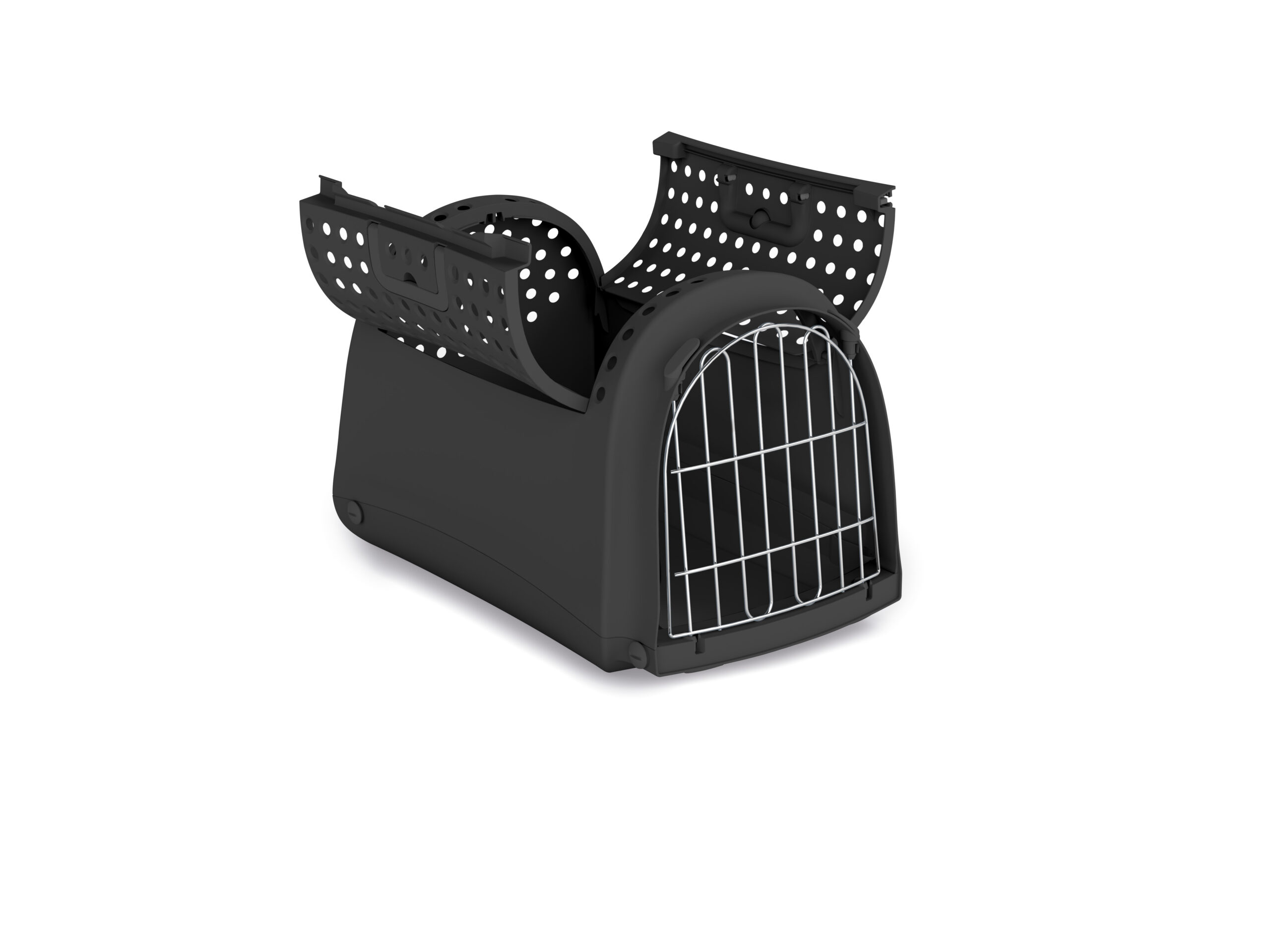 The IMAC Linus Cabrio Carrier is a plastic carrier for cats and small dogs. We highlight its double opening – a conventional opening in the front and a roof opening. The latter allows for extra control of your pet, which is especially relevant when they are young. As such, through this roof opening, you can easily get them out of the IMAC carrier, cuddle them, feed them, or offer them water.