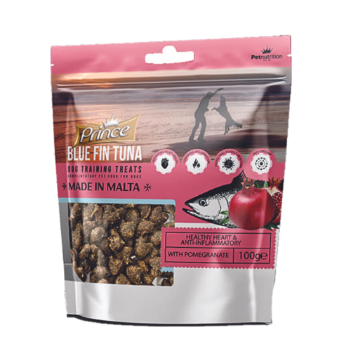 Prince Bluefin Tuna – Healthy Heart & Anti-inflammatory is a premium range of dog treats made with the finest Bluefin sushi-grade Maltese tuna, specifically crafted to promote your dog’s heart health and provide powerful anti-inflammatory benefits. Infused with Mediterranean-sourced ingredients like carob, olive leaf, pomegranate, and prickly pear, these treats are designed to enhance your dog’s overall wellness.