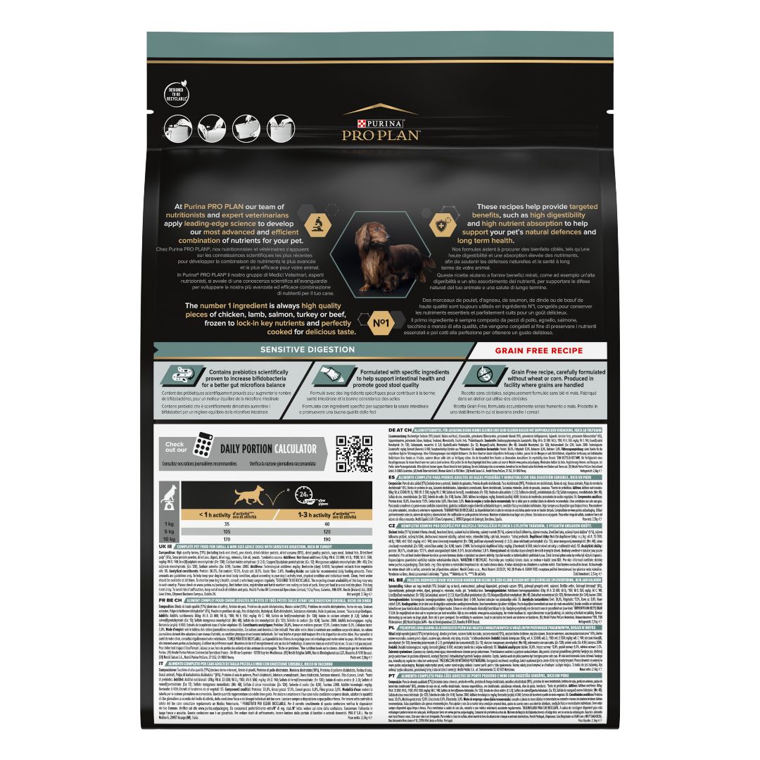 Complete grain-free food with turkey for your small adult dog with digestive sensitivities. This food is specially designed for dogs that need a light, balanced and at the same time comprehensive diet. It contains prebiotics that strengthen the health of the digestive system as well as special ingredients that support intestinal health and the good constitution of the organs of our little friends.