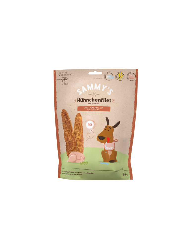 Sammy’s delicious, gently air-dried chicken fillets make your dog’s mouth water and make his tail waggle.