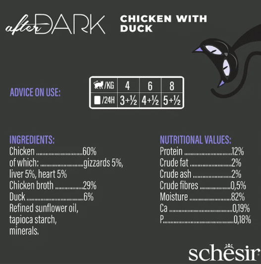 A high protein content with real chicken fillets in broth, together with tasty and nourishing chunks of heart, liver and gizzards and delicious duck.