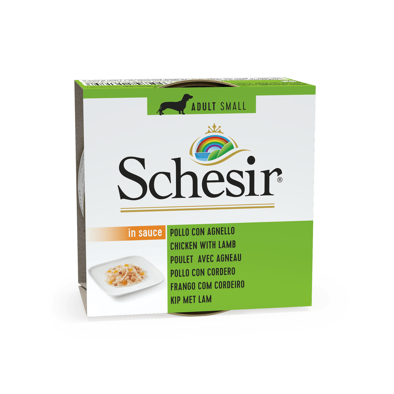 A Schesir recipe based on chicken and lamb, enhanced by an irresistibly smooth sauce. A delicious meal that cannot fail to appeal to your dog’s love of natural flavours!