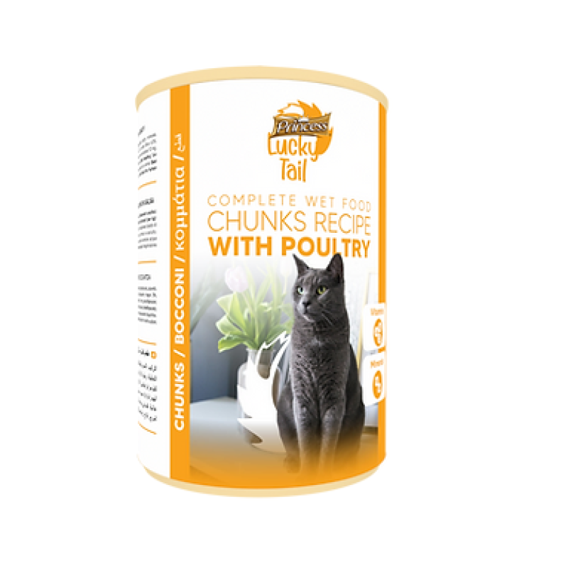 Poultry Chunks in Gravy! meat and animal derivatives (including poultry 4%), cereals, derivatives of vegetable origin, minerals.