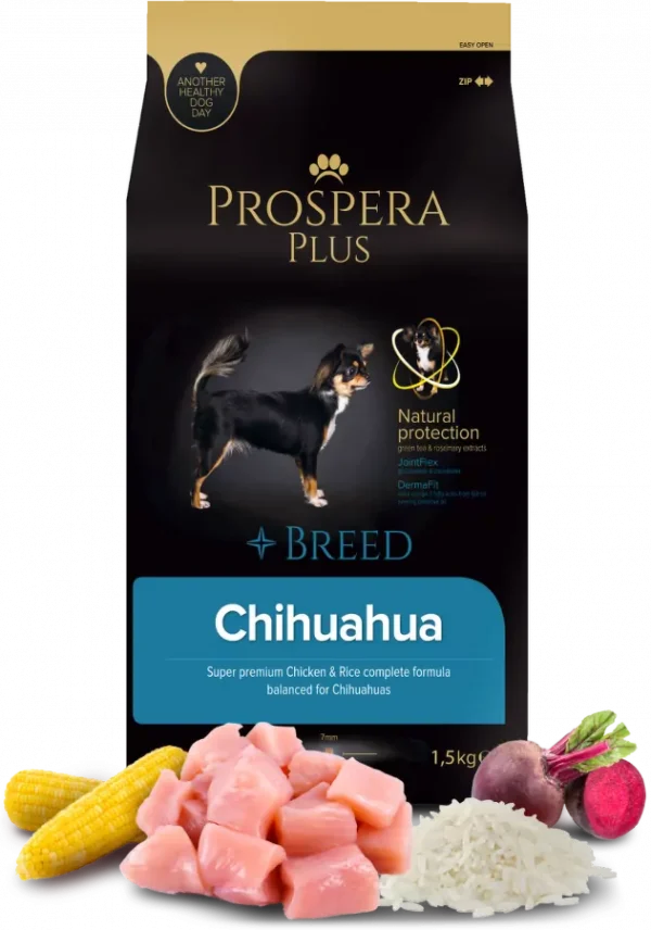 Super premium Chicken & Rice complete formula balanced for Chihuahuas. Natural protection green tea & rosemary extracts JointFlex glucosamine &