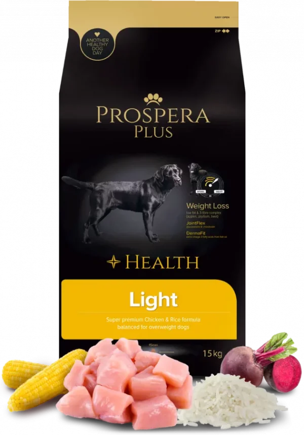 Superpremium Chicken & Rice complete formula balanced for overweight dogs. Weight Loss low fat & 3-fi bre complex (apples, psyllium,